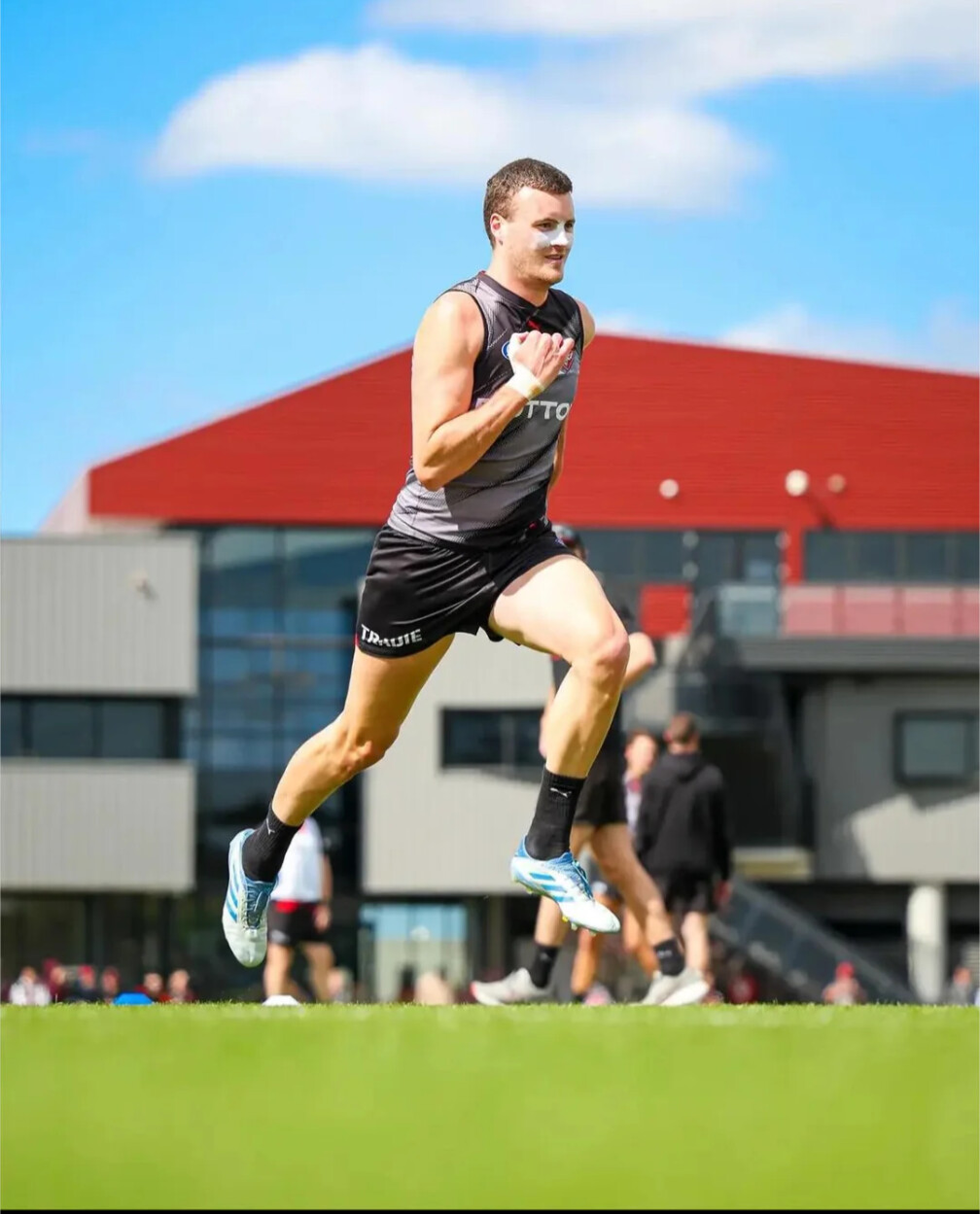 Halfway through the video you can see Nik in the background. He definitely has changed his body shape. Training as a key forward too.
