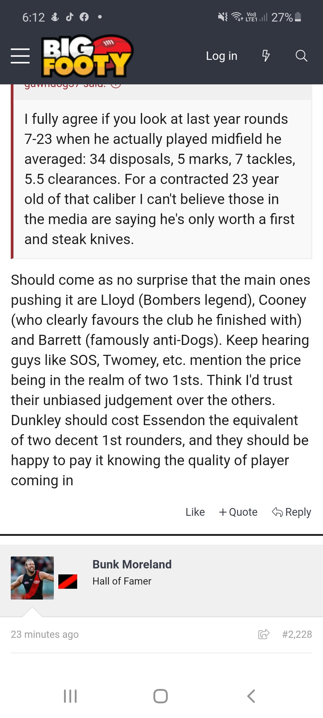 Dunkley requesting trade is not going to see the Dogs release a statement going “Thats dissapointing but sure why not”