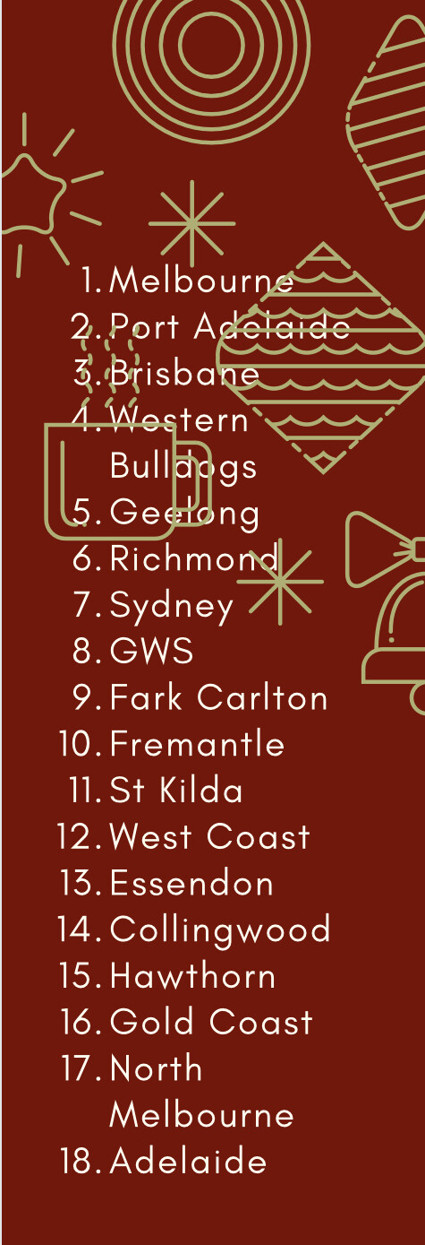 I think Brisbane Top 2 also, just so dominant at the Gabba … However I think we will beat the Lions in Round 2 with a statement making win at home