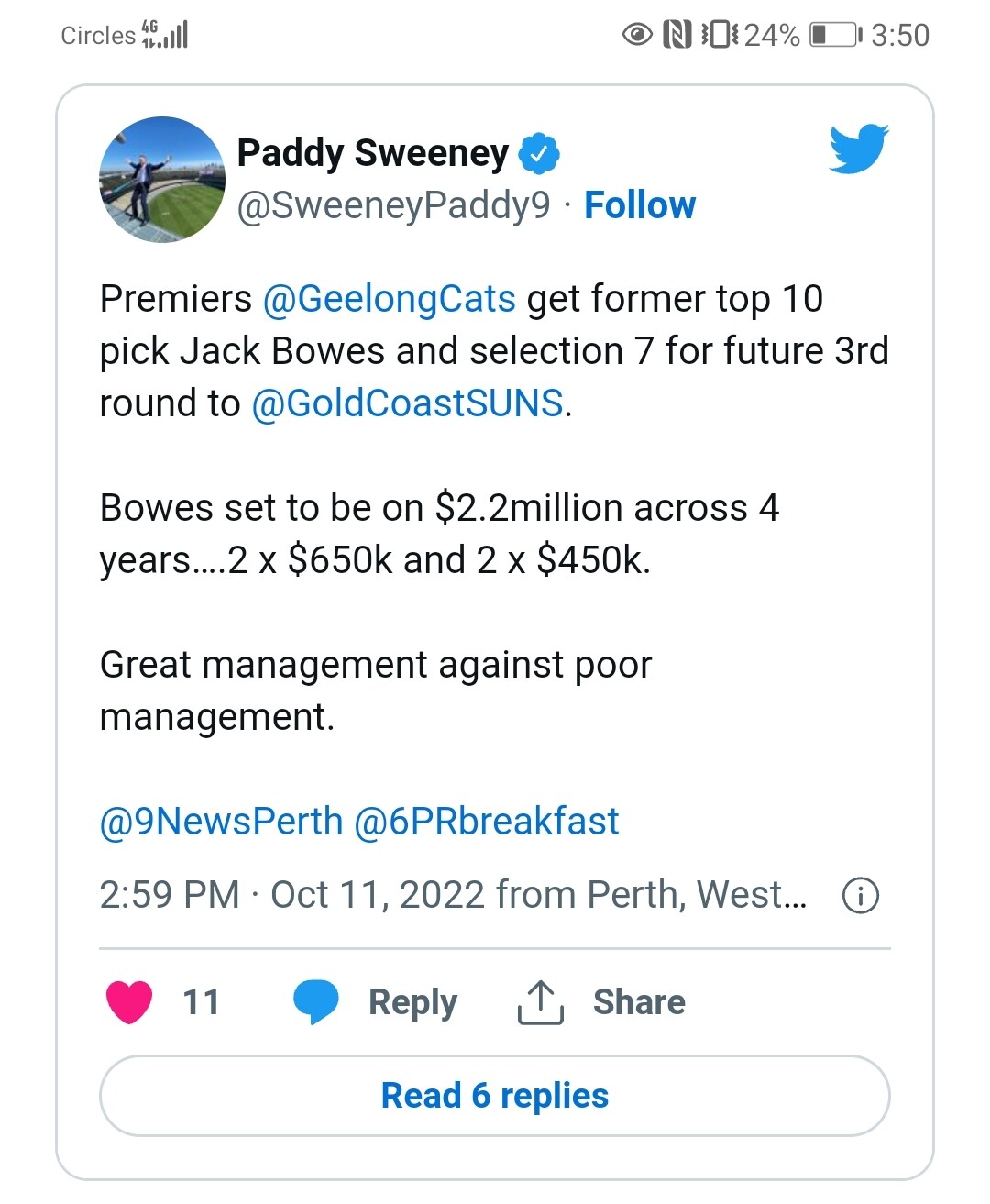 Do you think that if they fined GCS and enforced draft sanctions (let’s say took pick 7 off them), that they would have found a way to give Geelong that pick 7. And would have found a way to give Geelong Bowes?