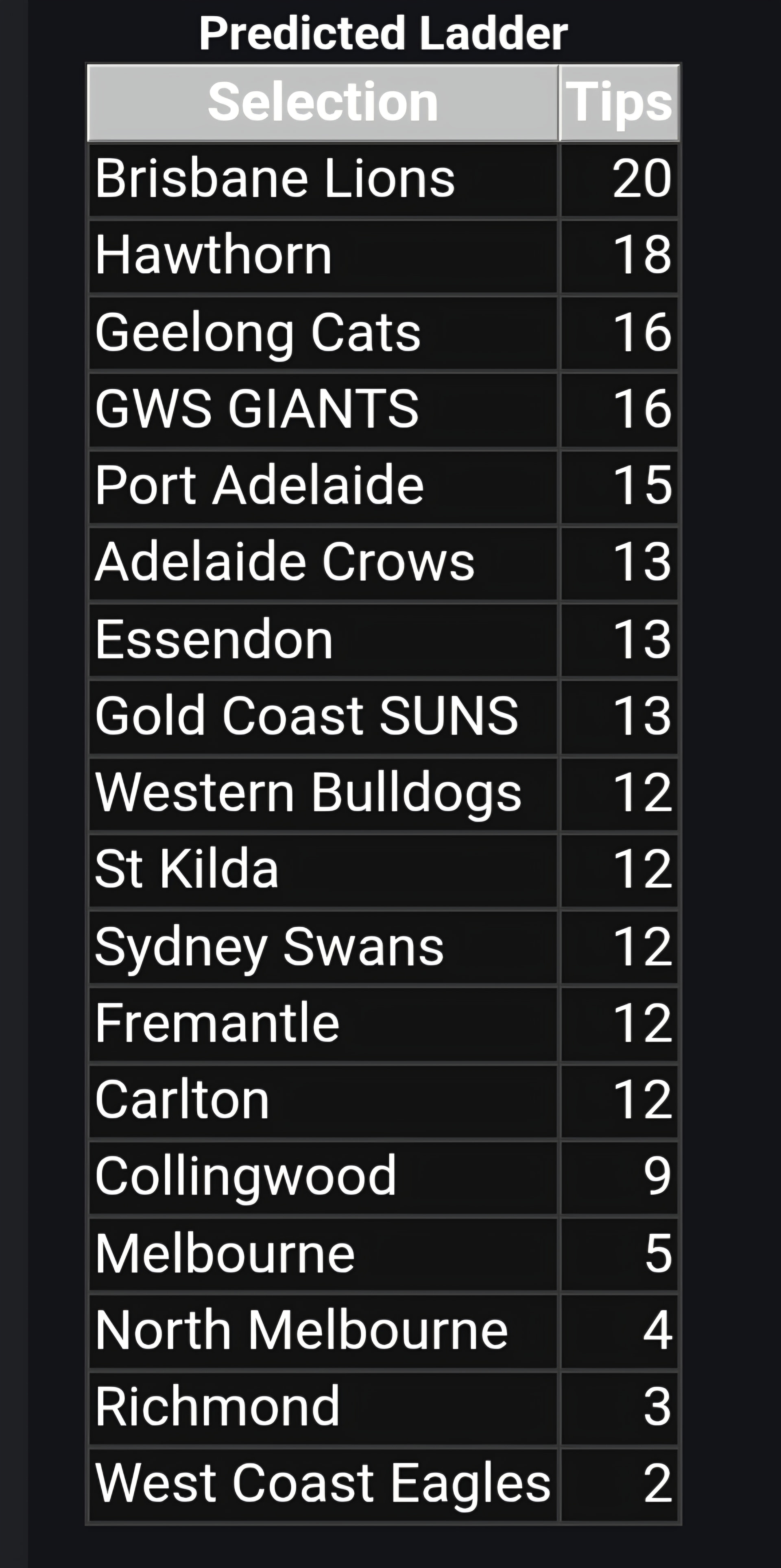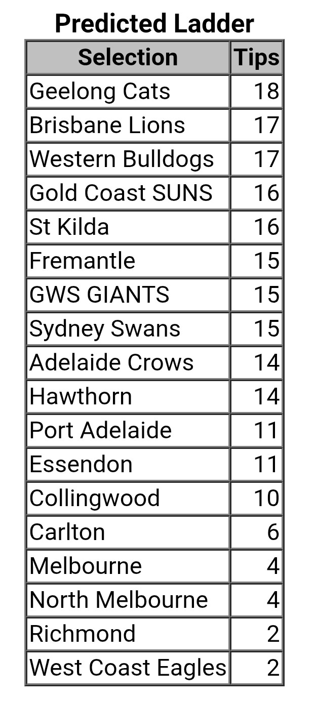 I particularly like that Carlton and Collingwood don’t even make the ladder.