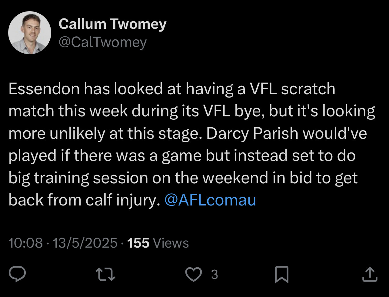 Misses VFL again this week due to the bye.