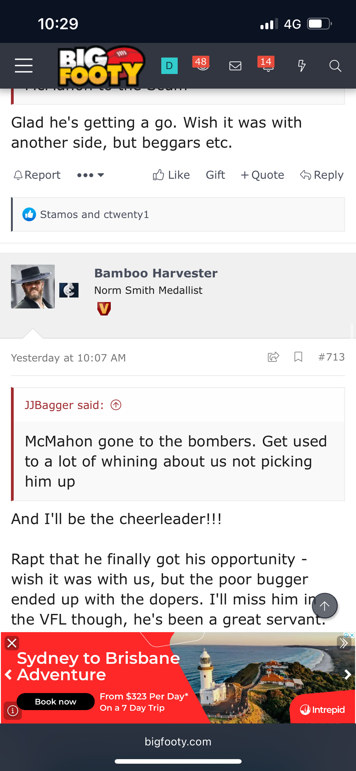I think it’s a good move, gets him an early debut, you can’t have laverde and Redman as our two key defenders for 4 weeks. Then once the talls come back send him back to full forward in the vfl.