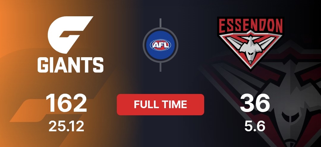 Essendon’s most recent 100+ point loss (surprisingly) at GWS in 2023. Up there as well. Needed to win that to get into finals that year against a genuine competitor and lost by a massive 126 point margin in what was a horror show of a match for the bombers.