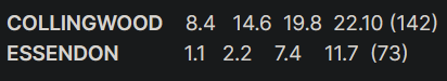 I was in the standing area near AFL Members that day and I was in-between two absolute f’wit Pies supporters that high-fived every single goal, every single contested mark, every single free kick. Take a look at the score difference at half time - I left.