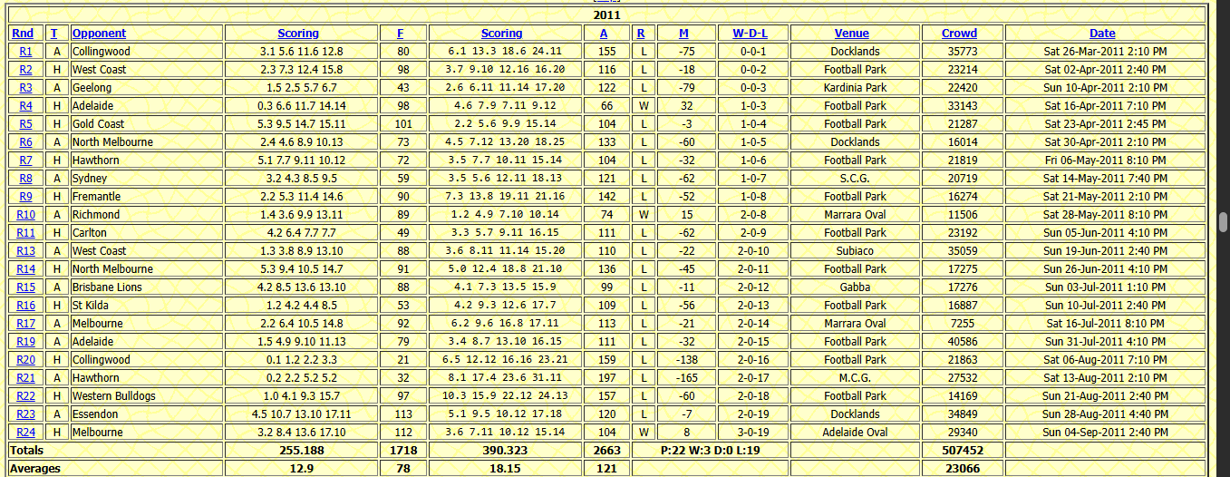 We got absolutely drubbed from start to finish. Disinterested, lazy football emblematic of the Worsfold era. Mark Baguley having his Indian summer in the forward line (bless him).