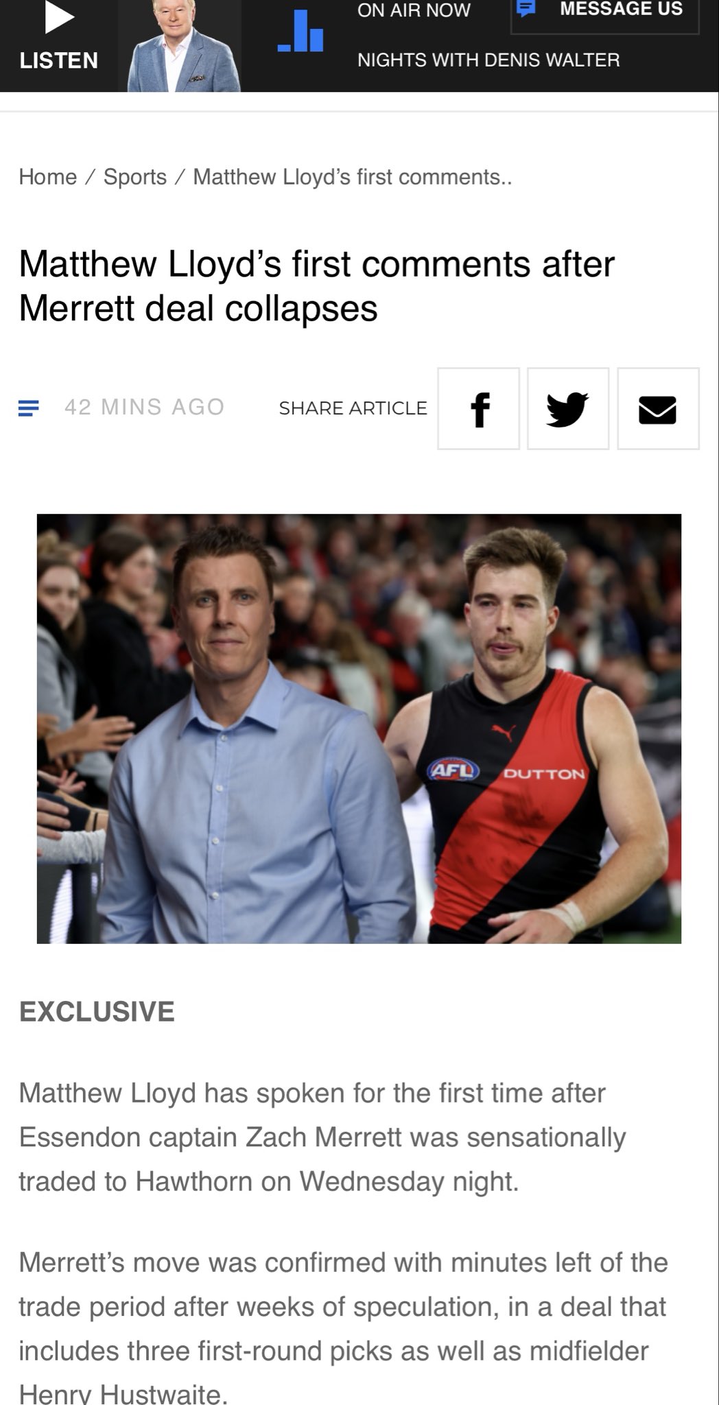Agree with everything Lloyd said. Hawks thought they could just walk him out so a good faith deal was never going to happen. Merrett needs to demand better training standards and players need to tell him how they feel and captaincy is out of the question. And most of all, we have to build a better club.