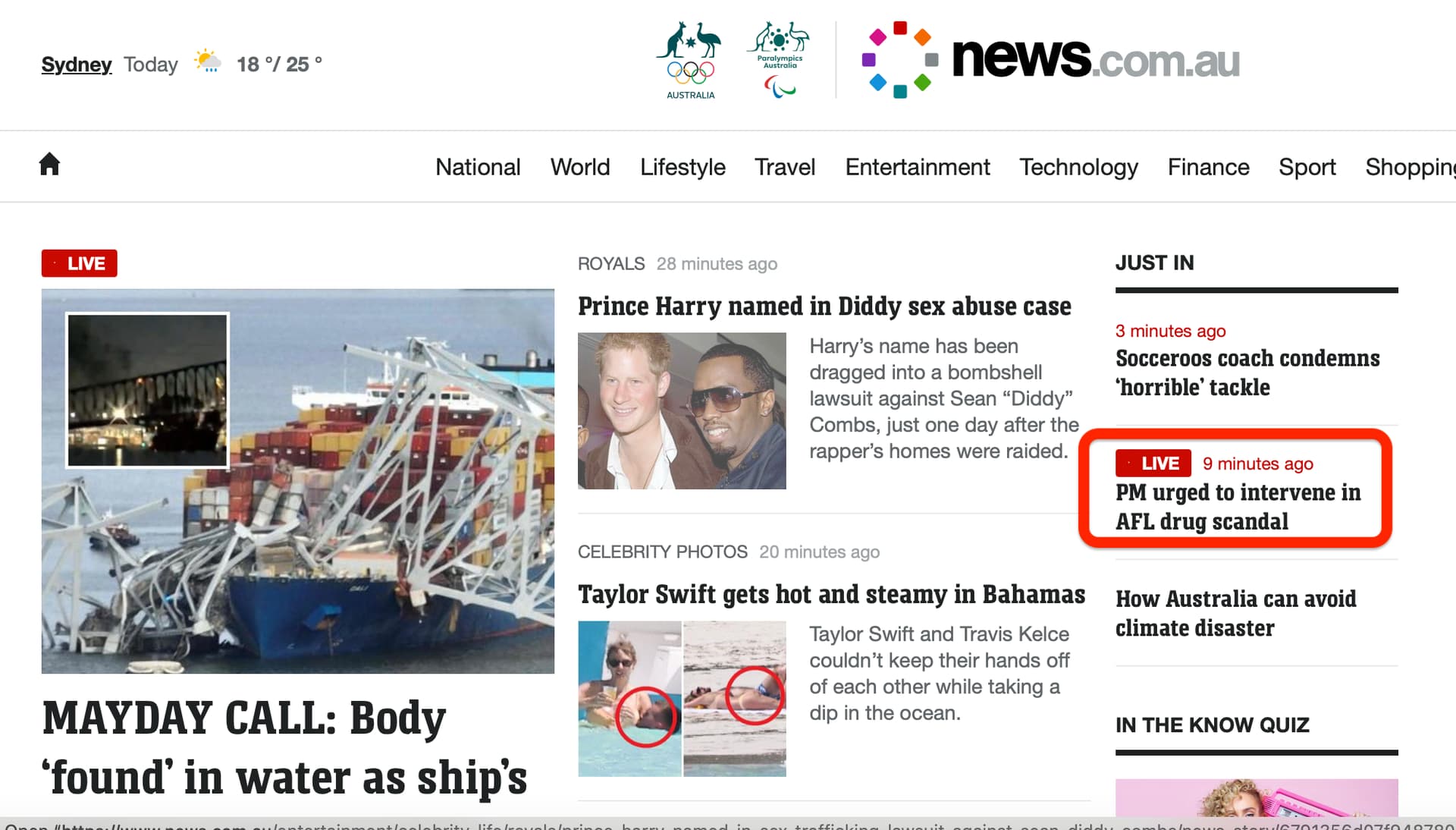 Funniest of all is the AFL article on Melbourne FC; oh wait, this was just a fantastic timing coincidence, and published a few hours before everything dropped.