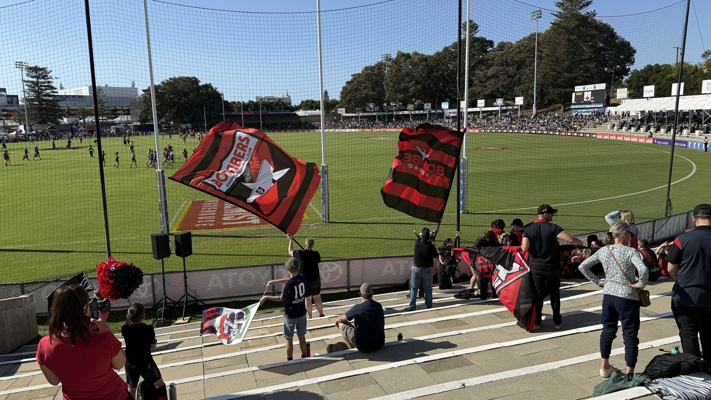 Driscoll attacks off the HB line with pace. Freo with a great chance to level the scores, hit the post. Phew (again).