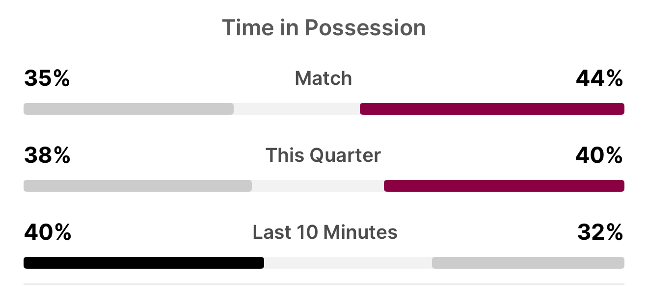 Our ball movement plan is non existant. Constantly down the wing without opening up the ground.