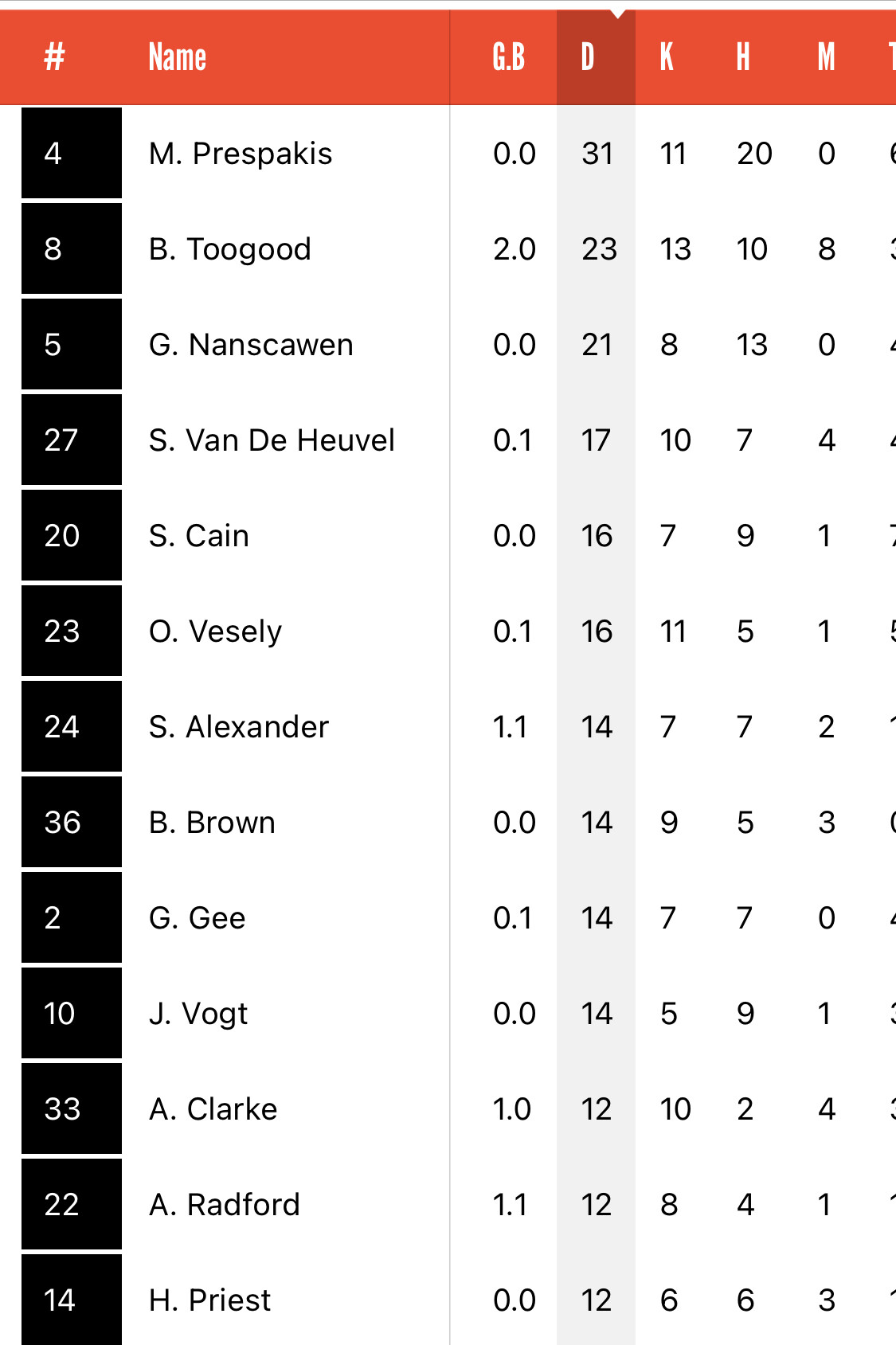 The Saints barely touched the ball last week. Two of the top 13 disposal givers from round one.