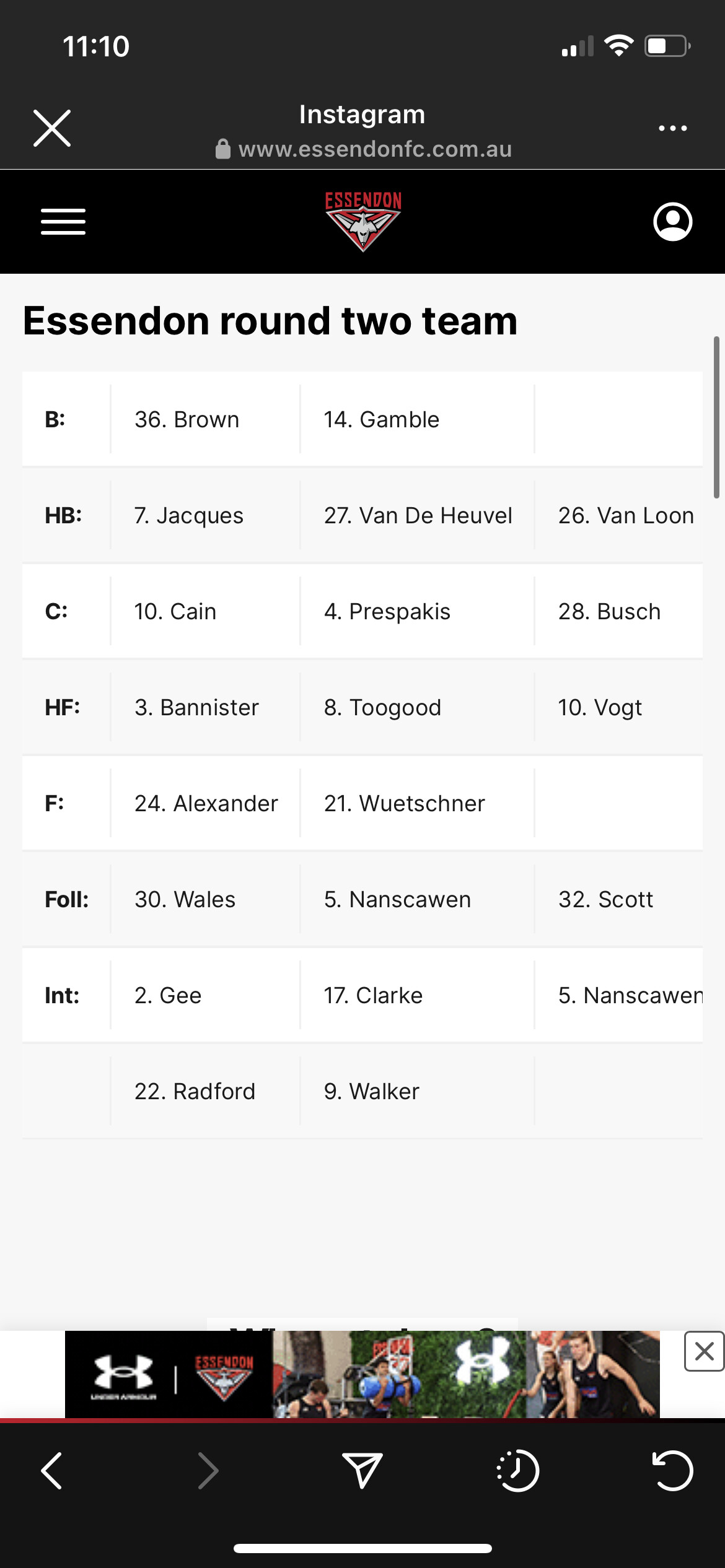 EDIT: the AFL match centre has Busch on the wing. Must be the first time that source has ever been right!