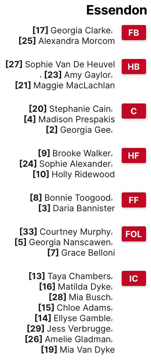 Roberts and Prespakis will be a must-watch contest on Sunday. However, the Bombers will also need to shut down intercept defender Charlotte Thomas.