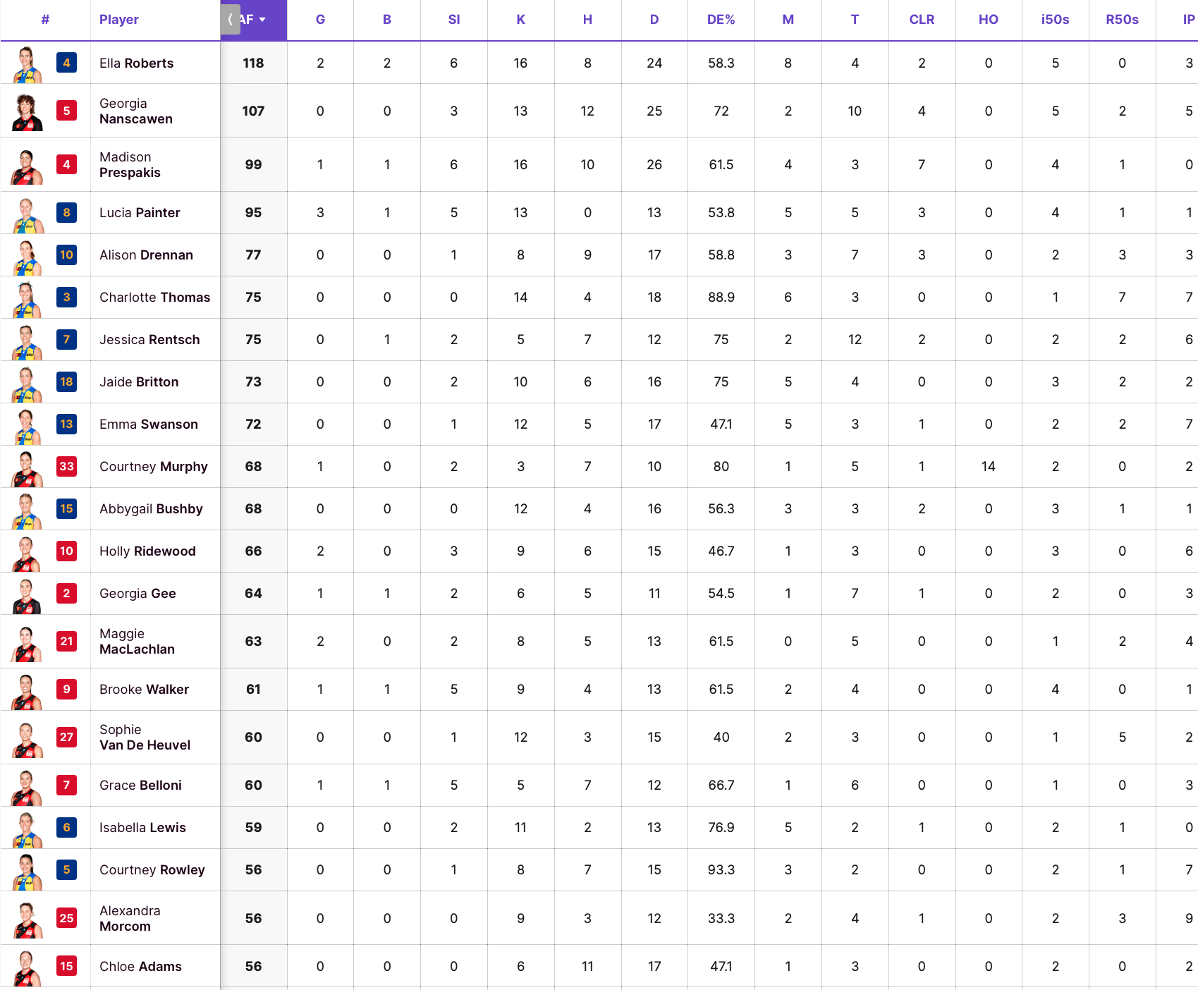 (Dyke was also ahead of their primary ruck Liz McGrath at #31, and Sarah Lakay much further below.)