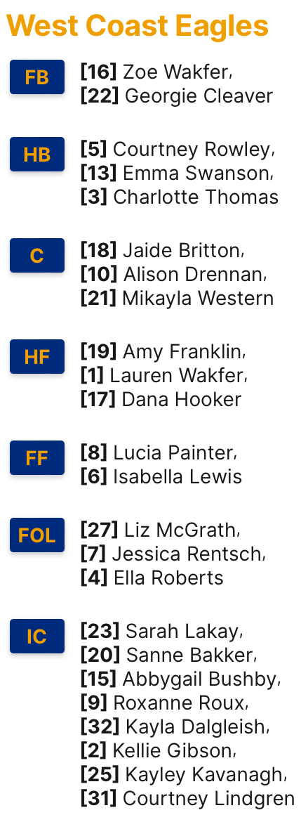 West Coast are set to unleash another debutant at Windy Hill, Kayley Kavanagh named to start.