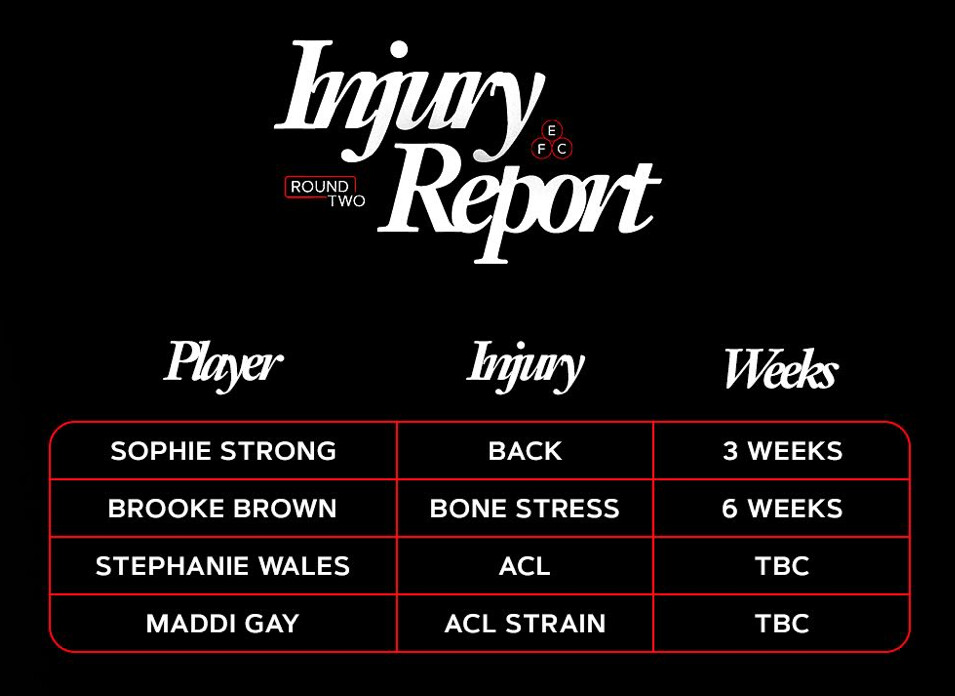 | Lucy Boyd | Ankle | 3 weeks |