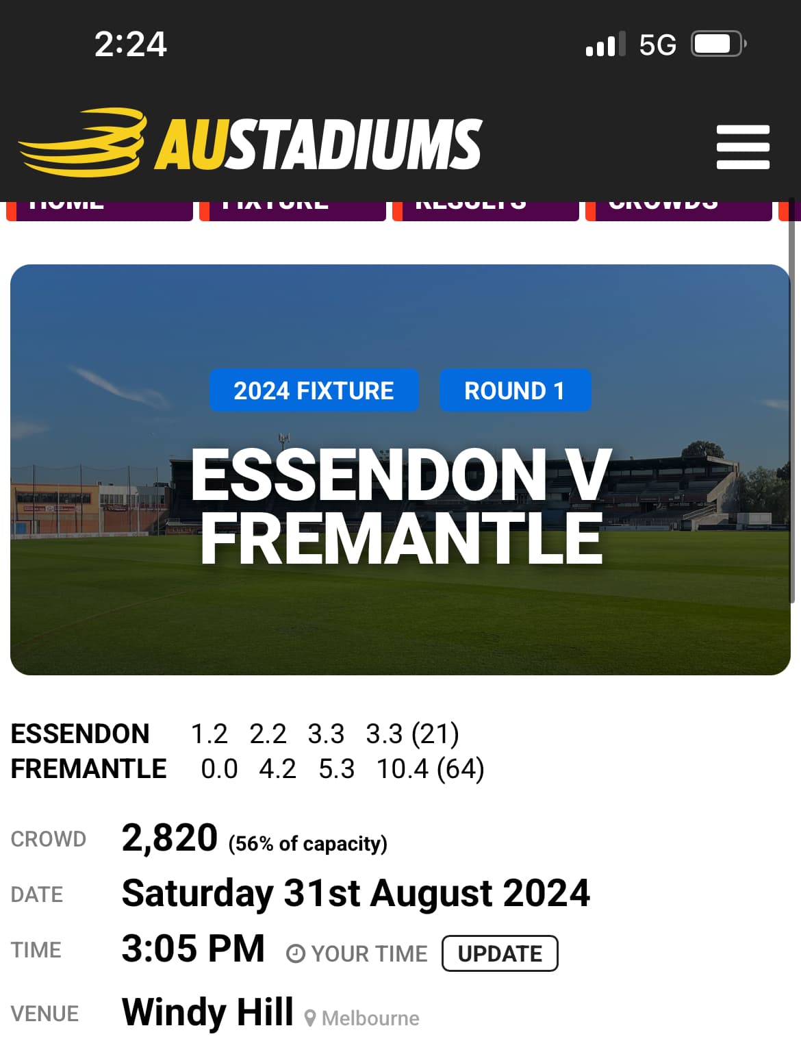 Crowd is doing the last-minute-arrival thing⌠hopefully. Still poor given the sun and record score last week.