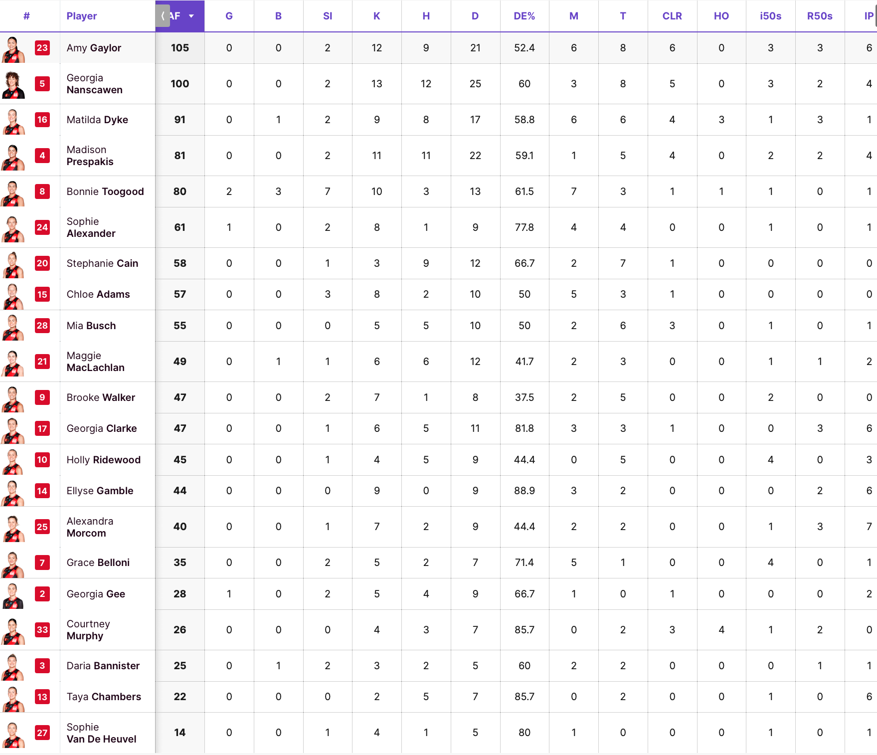 - Gamble tied with a bunch of other Dons for intercepts, just behind MORCS. Ellyse also had the highest disposal efficiency across both teams.