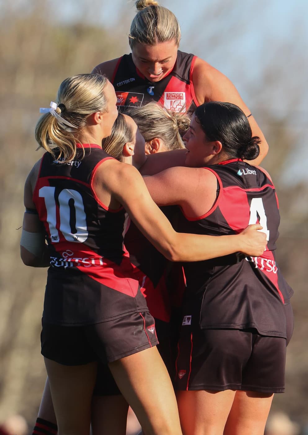 Essendon co-captain Bonnie Toogood lifted her side with two important goals, supported by a midfield led by Georgia Nanscawen (24 disposals, seven tackles) and young gun Amy Gaylor (22 and six, 319 metres gained).