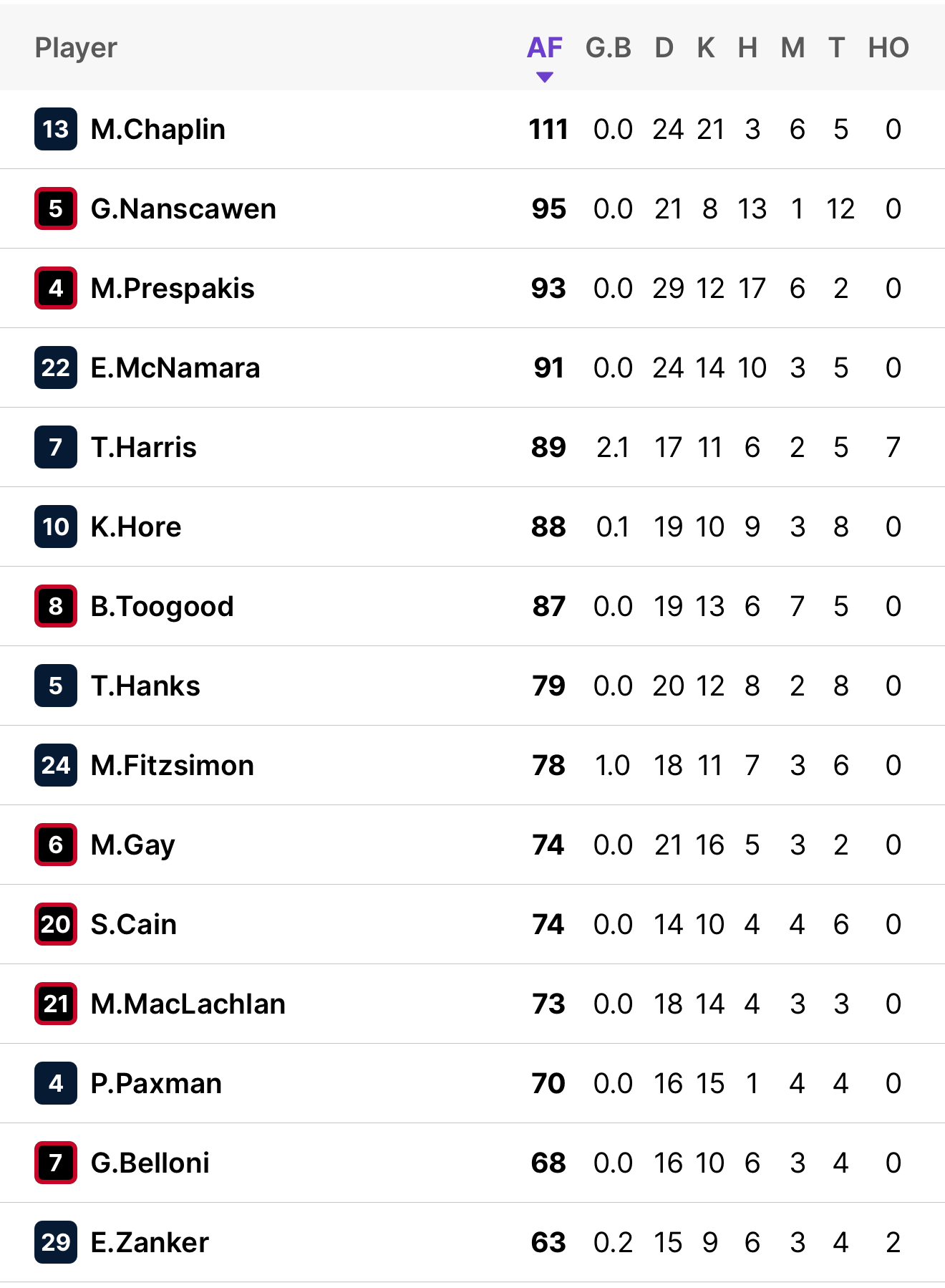 - Nanscawen topped contested disposals, Prespakis uncontested (both for both teams). Not sure how you go from “uncontested” to “inefficient disposal”, and vice versa.