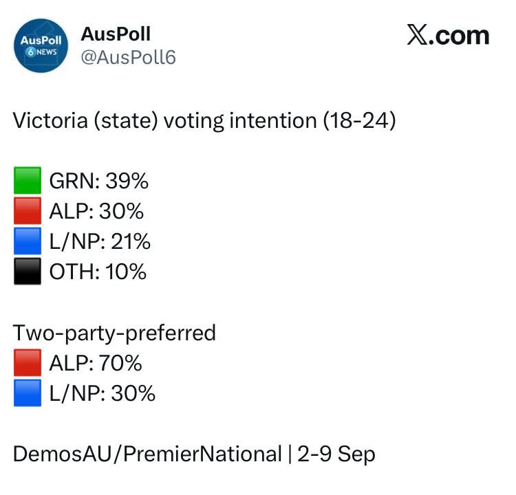 Greens, and policy-wise they’re increasingly so far out there towards Trump territory that any sane Teal party would be hard pressed to side with them. Any compromises the Teals ask for in the fields of climate, for instance, would likely be too much because ANYTHING would be too much.
