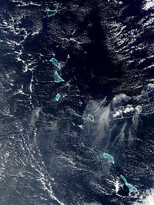 The total land area mass total 811 km2 (313 sq mi). It includes three island groups - Gilbert Islands, Line Islands, Phoenix Islands. Most of the land on these islands is less than two metres above sea level.[2]