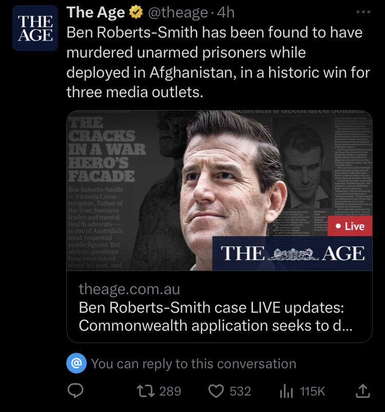 Yeah it’s the civil standard - but with regard to the imputations that BRS murdered a civilian and, as a result, is a criminal, the judge found that the news orgs had established their substantial truth