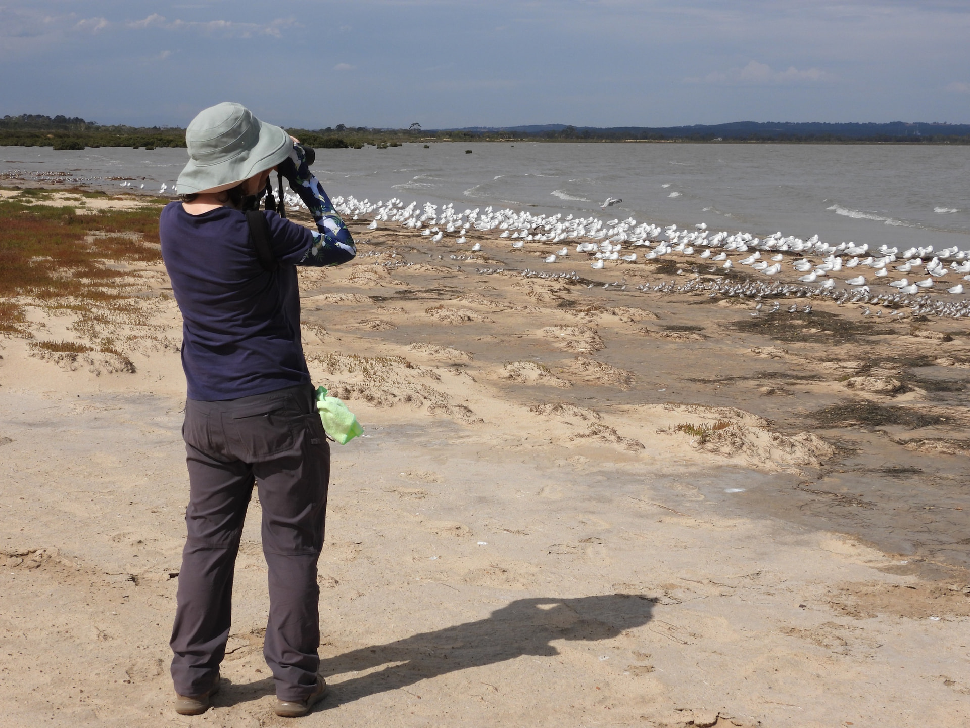 BH in her element at Stockyard point, possibly her fav birding experience is waiting for high tide to bring in the birds there, in this case a 2 hour event and blessedly not another soul around.