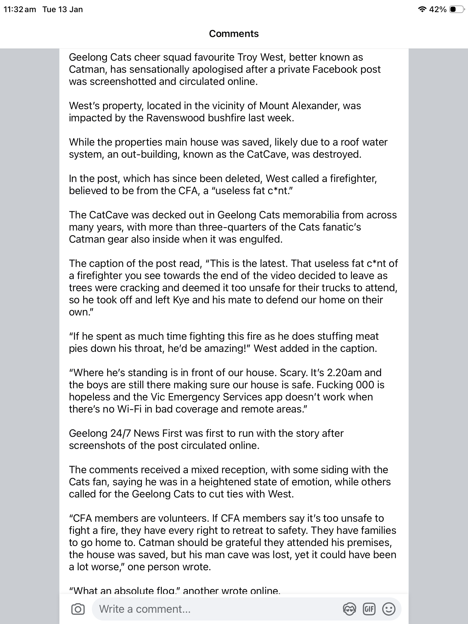 What a flog, maybe next time they might let his house burn down. Fark him. Ungrateful ■■■■!