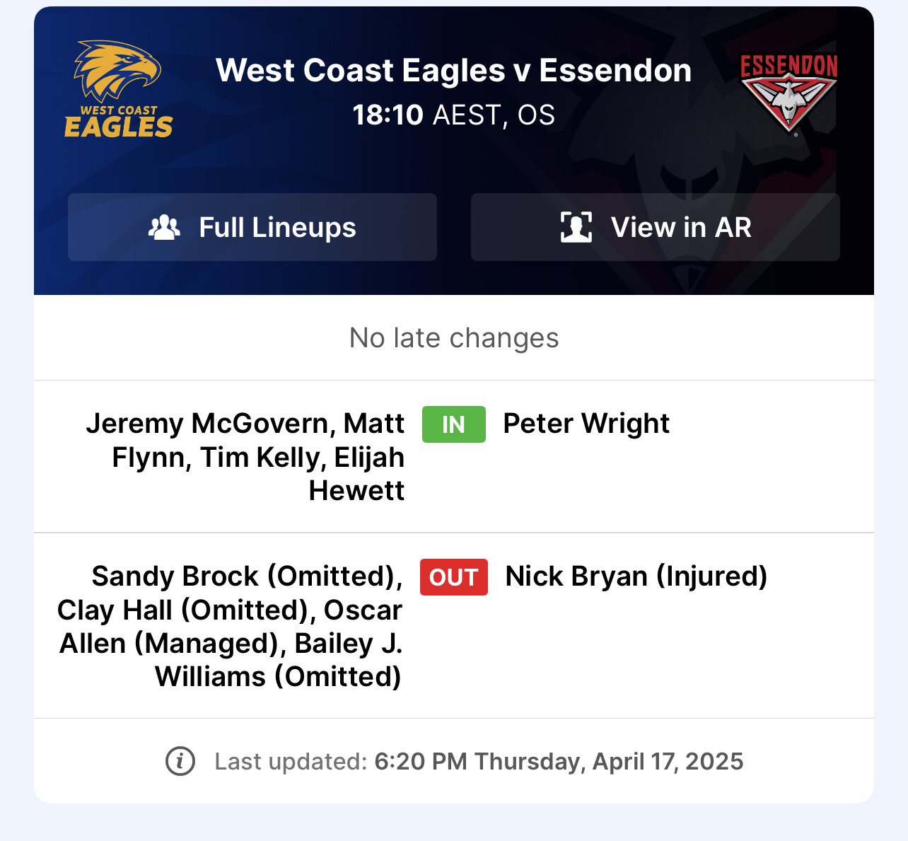 Iām totally confident that whatever team selections the club decides on will ultimately be the right decision. Iām positive on that.