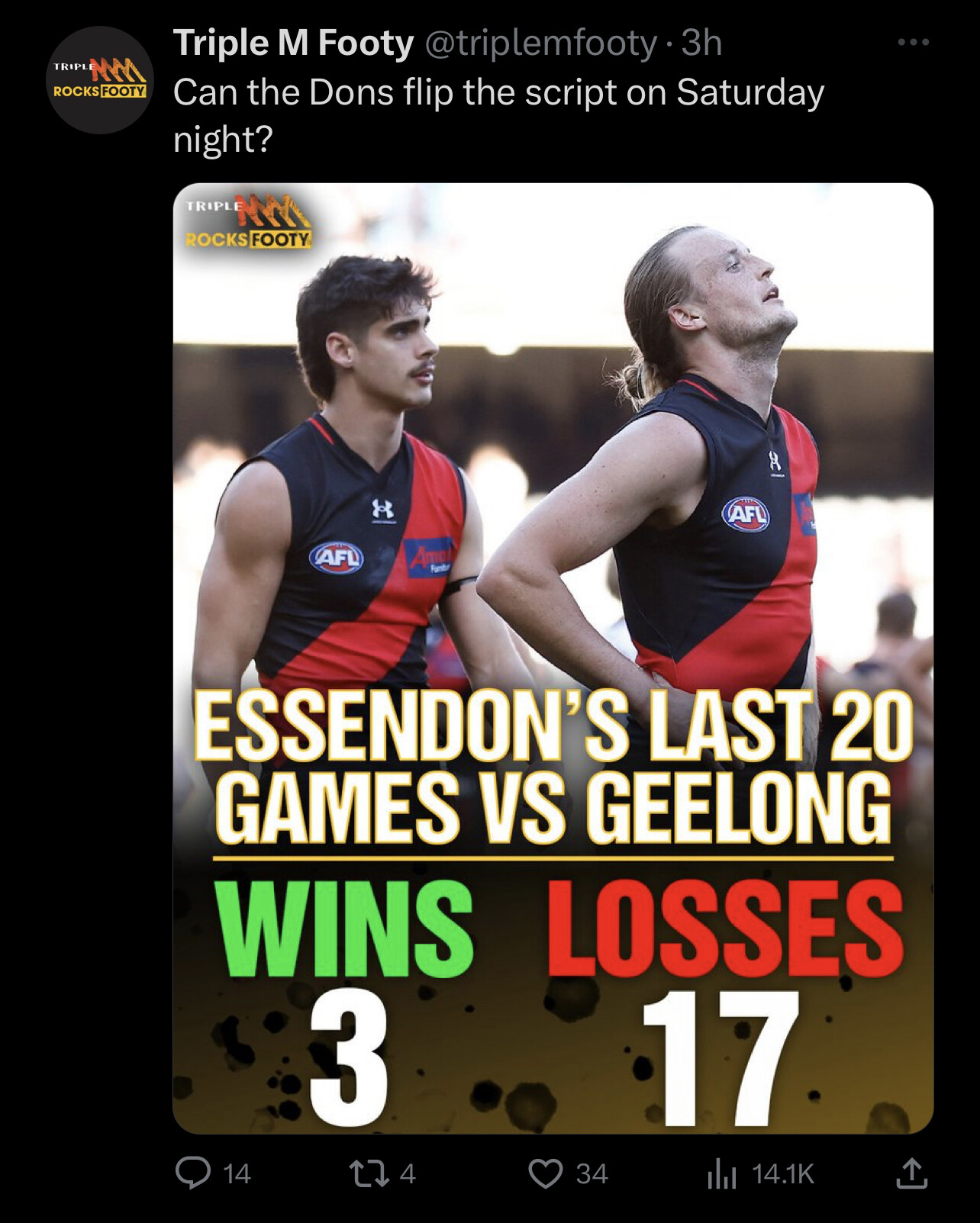 A big issue with being Essendon is the media hype around all our games means that the really good teams get up for our games despite the fact that we are not a good team.