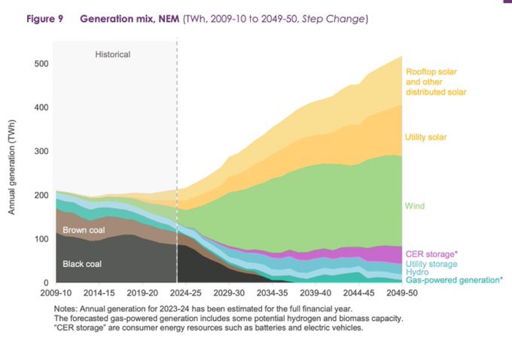 This is the energy generation forecast through to 2050, which includes more gas but has a massive total drop in emissions with a vast increase in electricity generation.