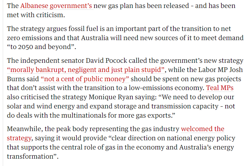 Jeez, if only people made the suggestion decades ago to use gas as a transition fuel (at that time) while having major investment (at that time) in renewables and their stabilisation, including batteries, and divestment (at that time) from coal. If only.