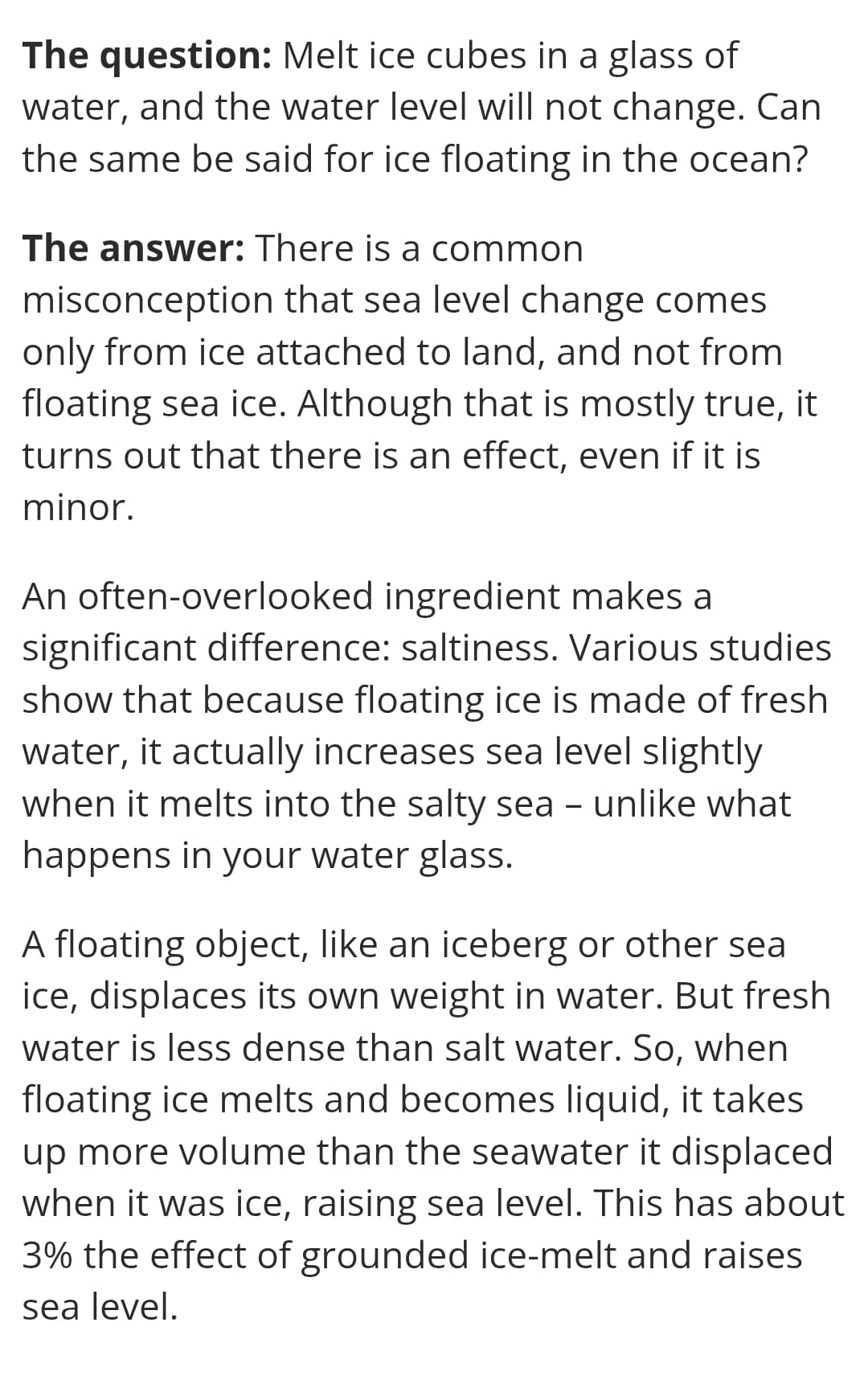 I assume youâre just talking about sea ice? Land ice is a different matter.