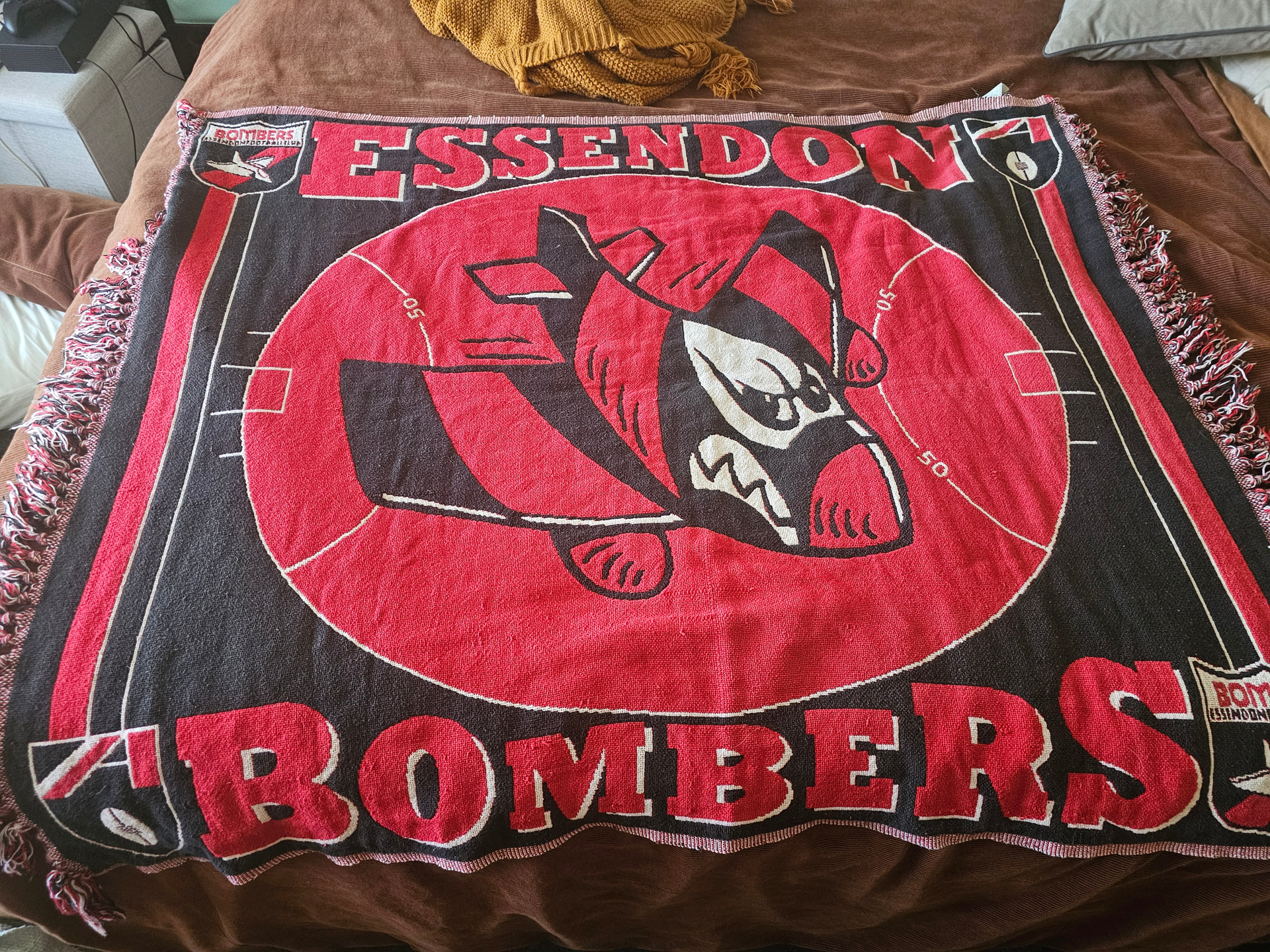 This officially licensed throw rug was mine as a young fella (I’m 33 now) and I feel like it perfectly represents the Bombers I knew growing up.