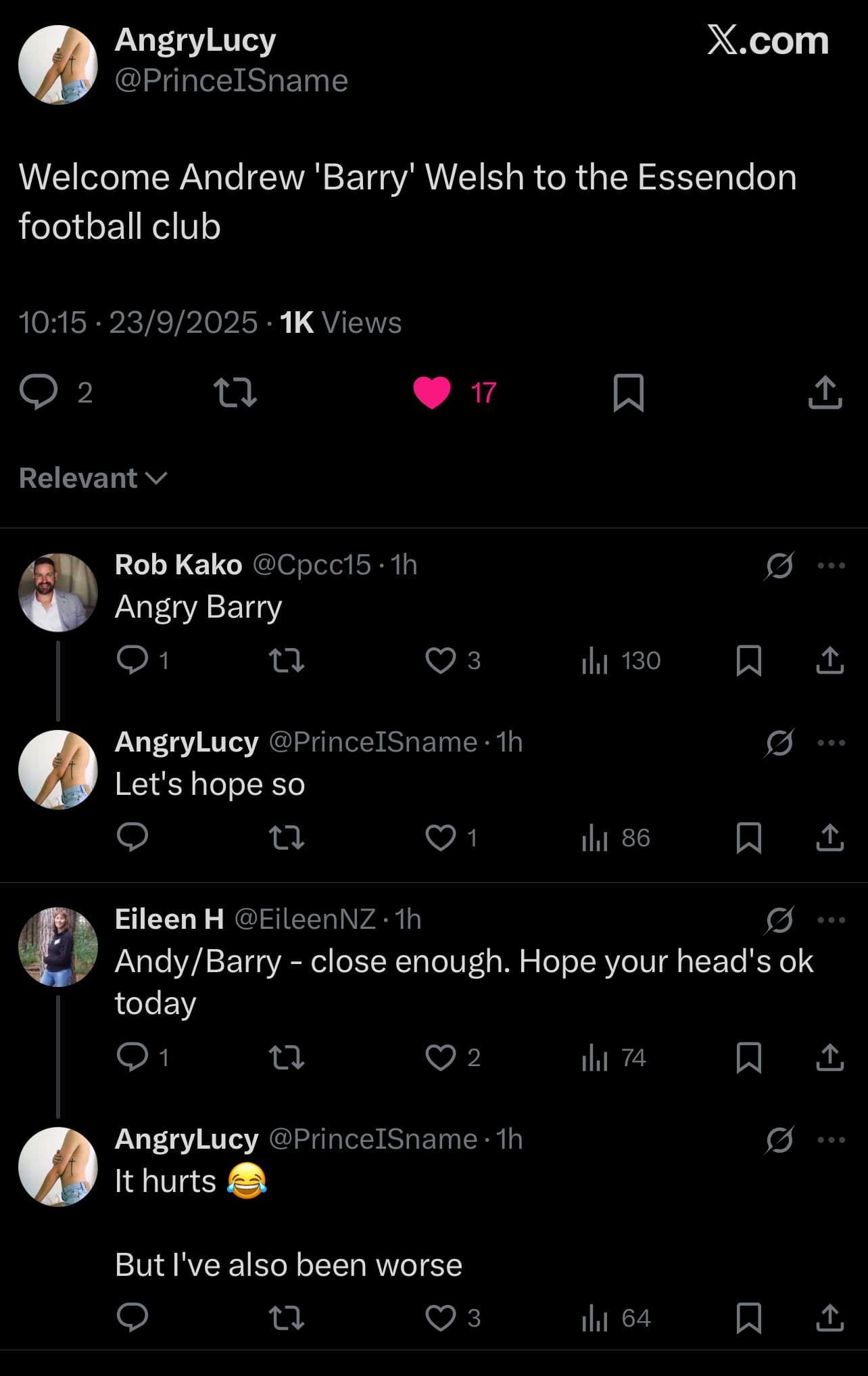Yeah, like Brendon Gale’s playing career.