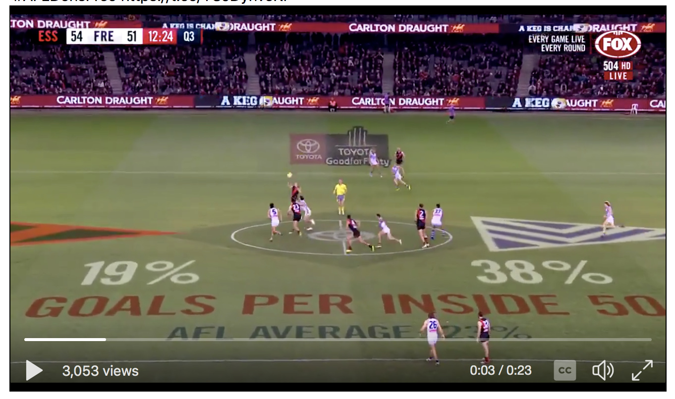 Had several frees paid straight in front to Freo and anothet bias set of frees in general play that did not reflect possession time where we had 25% more of the ball…AGAIN. A bit in accurate ourselves, else we win by 10 goals + IMO