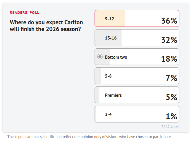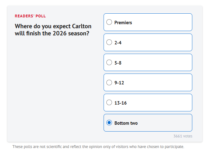 LOL, Iām checking out individual teamsā training reports for DreamTeam info and was on the Carlton board. One preseason training visitor commented on their internal matchsim.