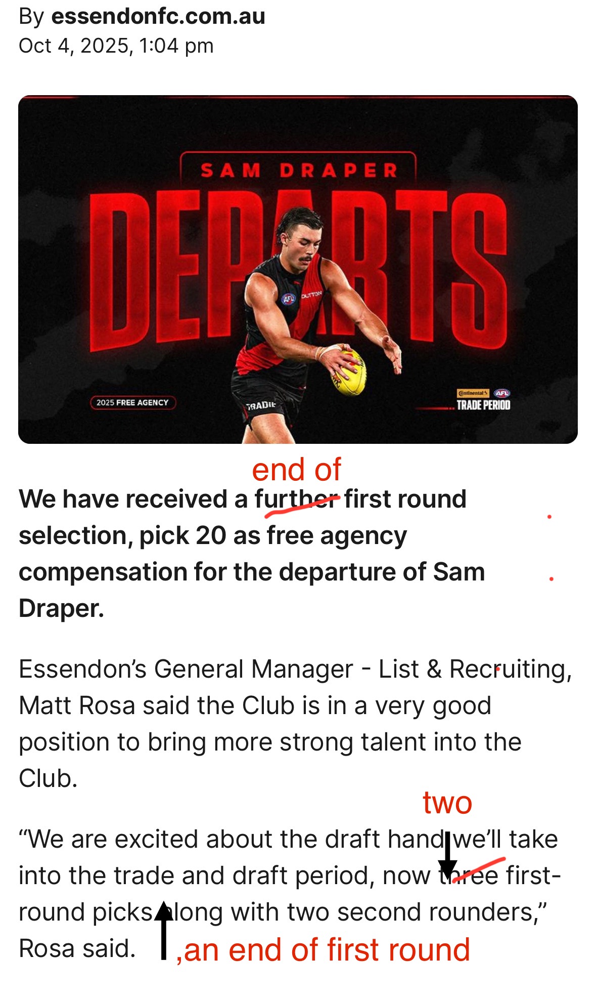 Regardless of how average Draper is, he was a bottom 4 sides number 1 ruck and is going to the premiership team. Essendon should have been rewarded as such.