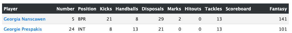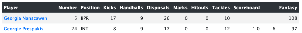 - Dana East (Fremantle) – Forward contributor.