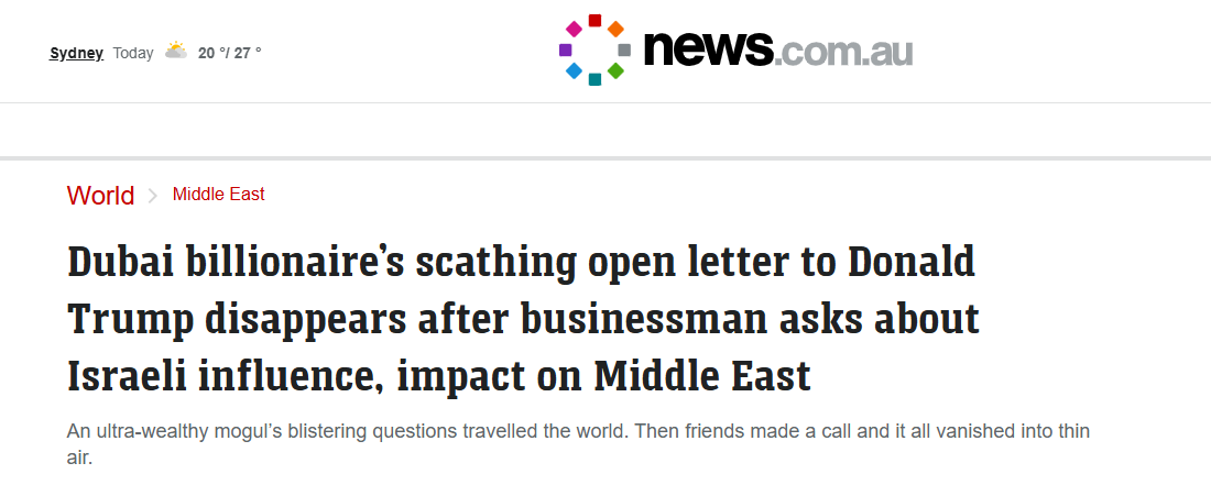 Speaking to the Washington Post this week, Al Habtoor said he ultimately decided to delete the post at the request of “friends” from the UAE and the US, claiming they had told him it was not the right time “to upset the Americans”.