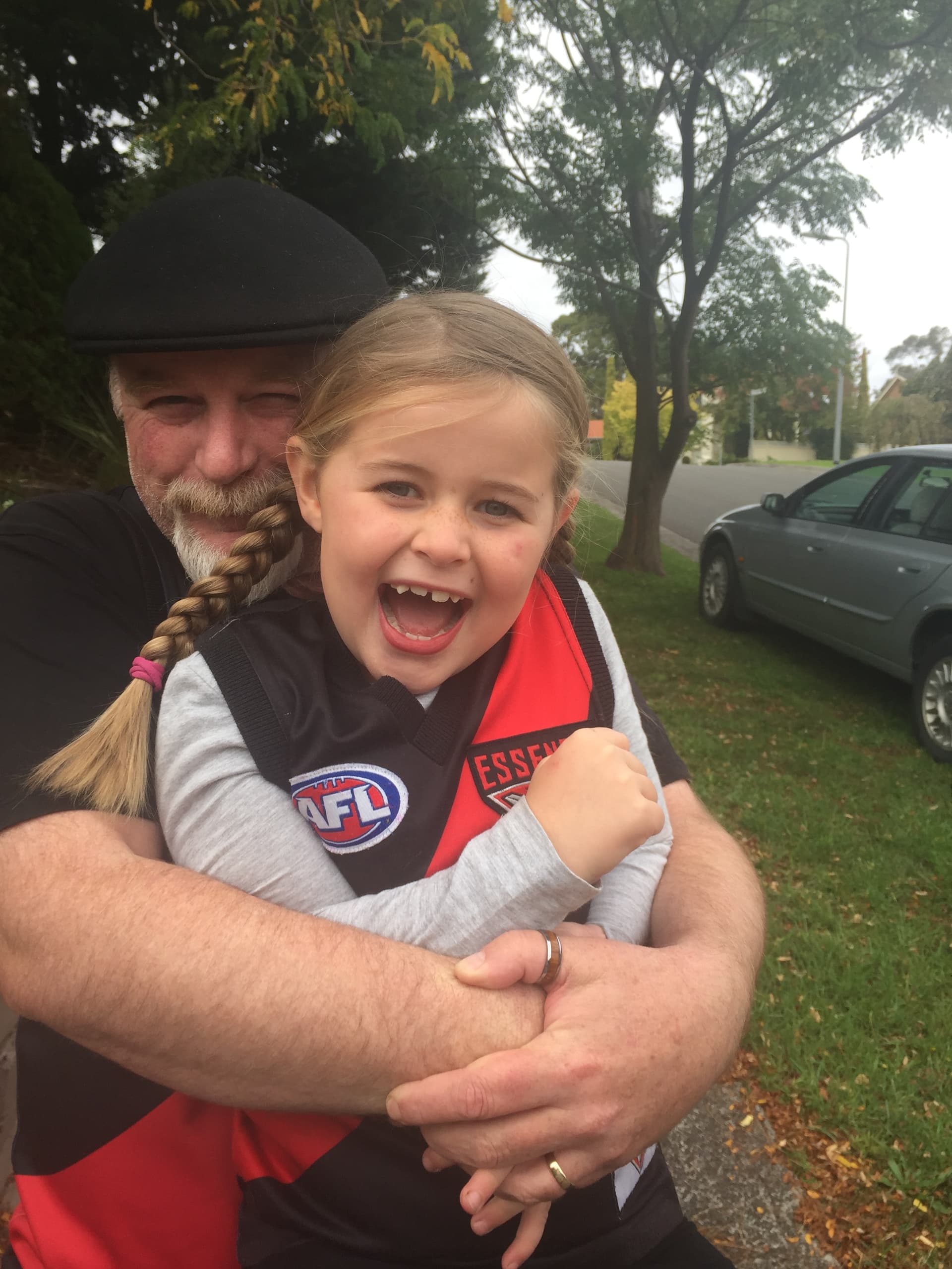 And before you go off about the beret, my daughter sewed it herself specifically for Essendon games.