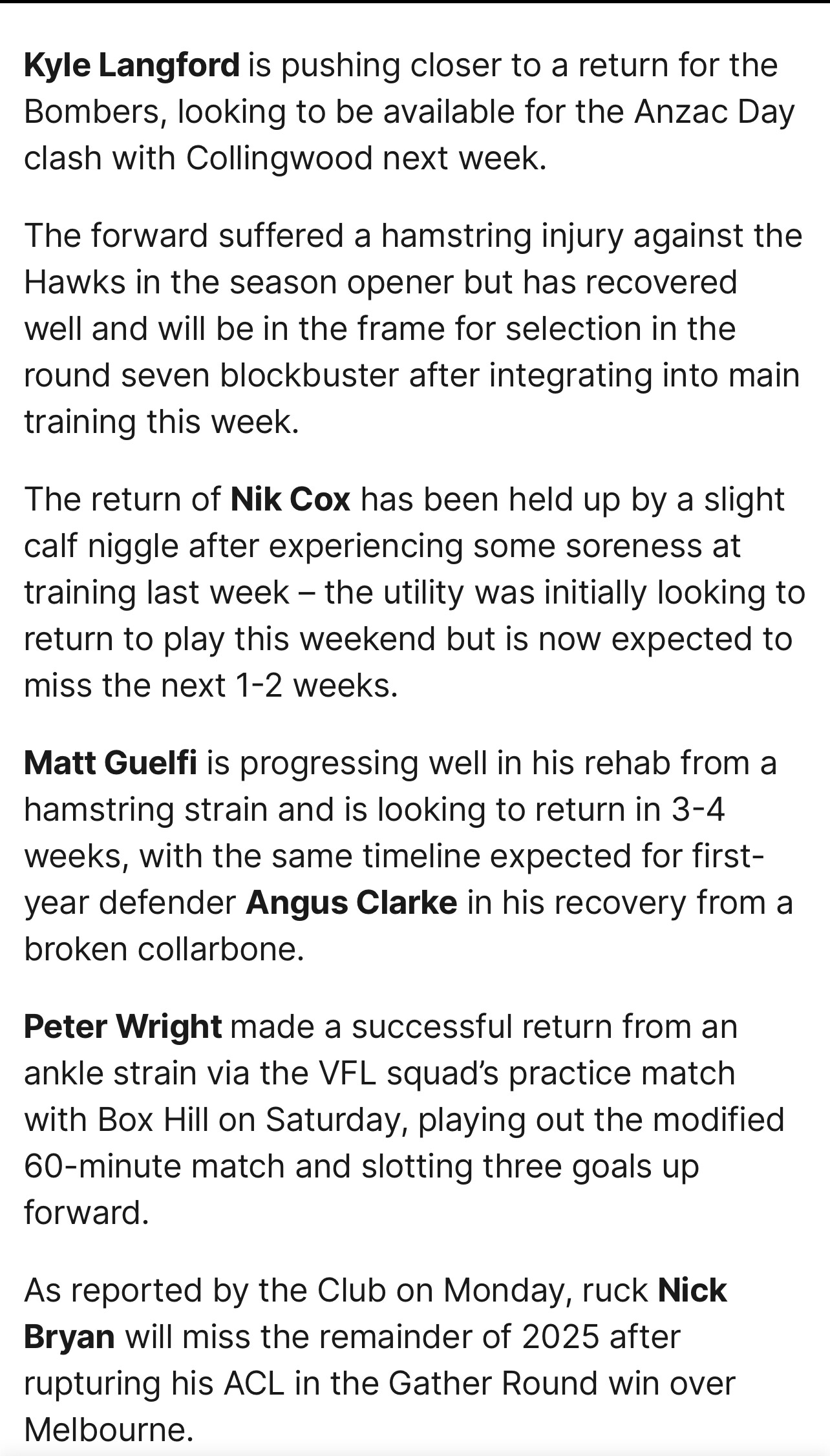 Two years ago our Vfl players were running faster 2km’s on average than our Afl guys. Last year Jones’ ankle injury was directly because of negligence from Murphy and his team.