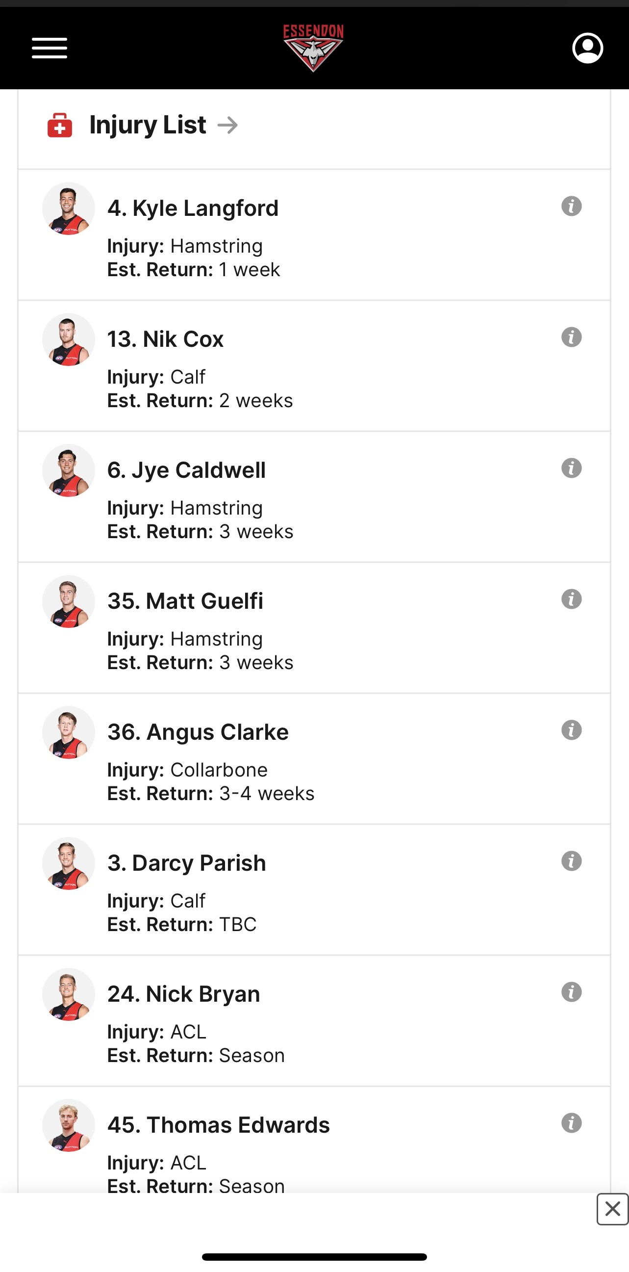Wasn’t Caldwell 3 weeks last week as well? RIP And Guelfi still at 3 weeks as well.