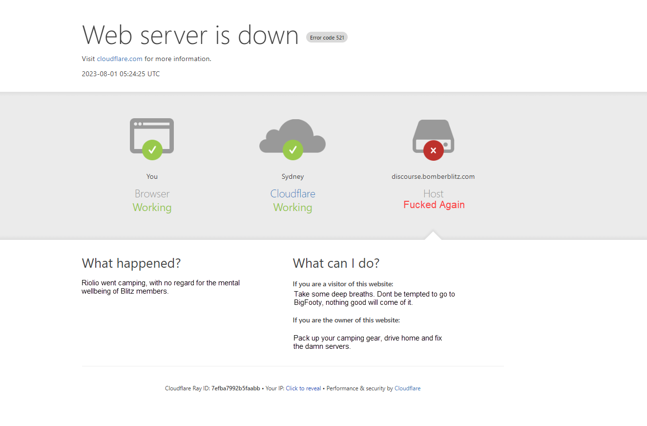 I think the blitz server gods are angry and are asking for a sacrifice, I nominate @Bacchusfox, he’s the oldest and closest to them.