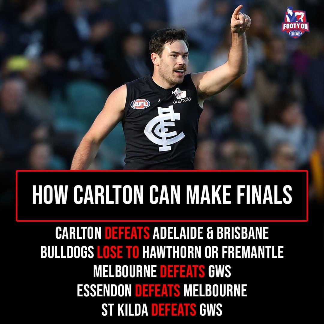 The way i see it dogs, gws and pies all need to fall in a heap. And we need to miraculously win our last 2.