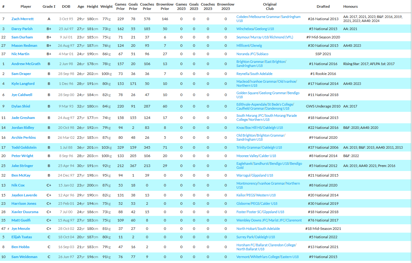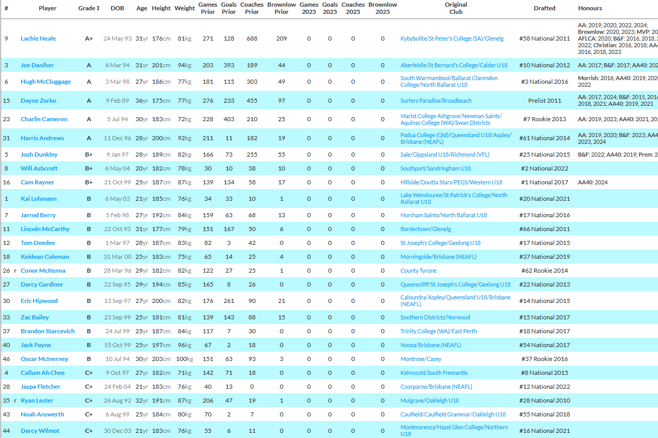 Some of our gradings seem very generous lol. Goldstein, Perkins and Draper as B graders, alongside Zac Bailey and Coleman