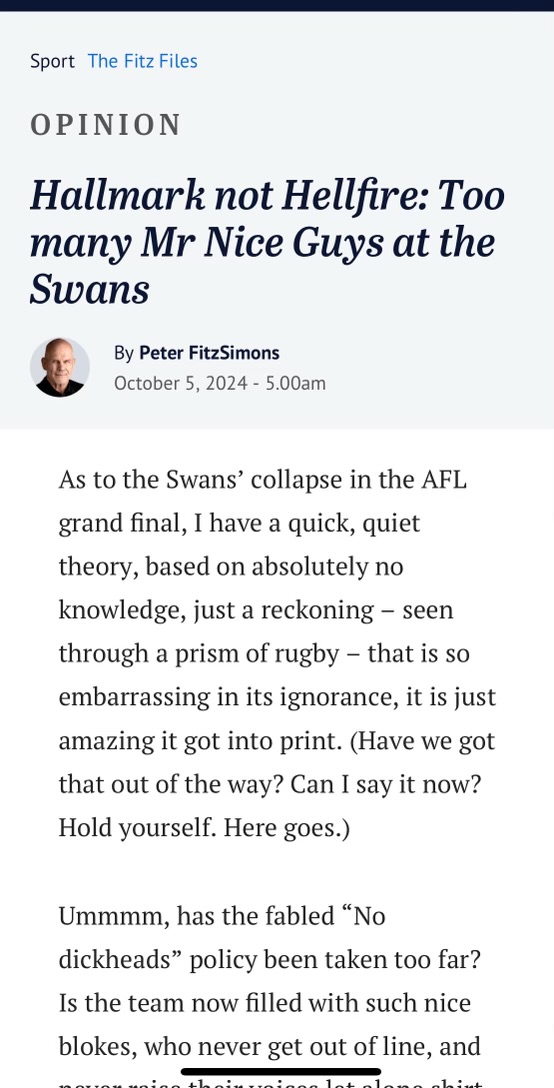 To be fair, Matt may turn out to be a genius recruiter but based on first impressions from the interview and the deafening silence from the club so far, mediocrity continues to stalk us. He gave me the impression of being a nervous first year apprentice on a CFMEU worksite. I desperately hope I’m wrong.
