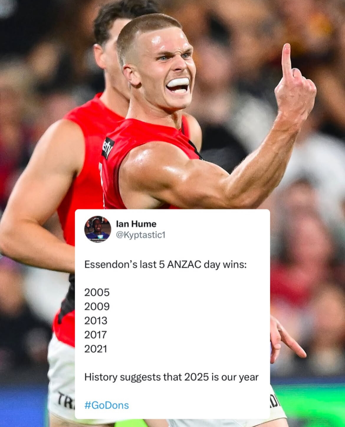 Yasssss bomber fans - enjoy your Anzac Day win as often as you see an Olympic Games