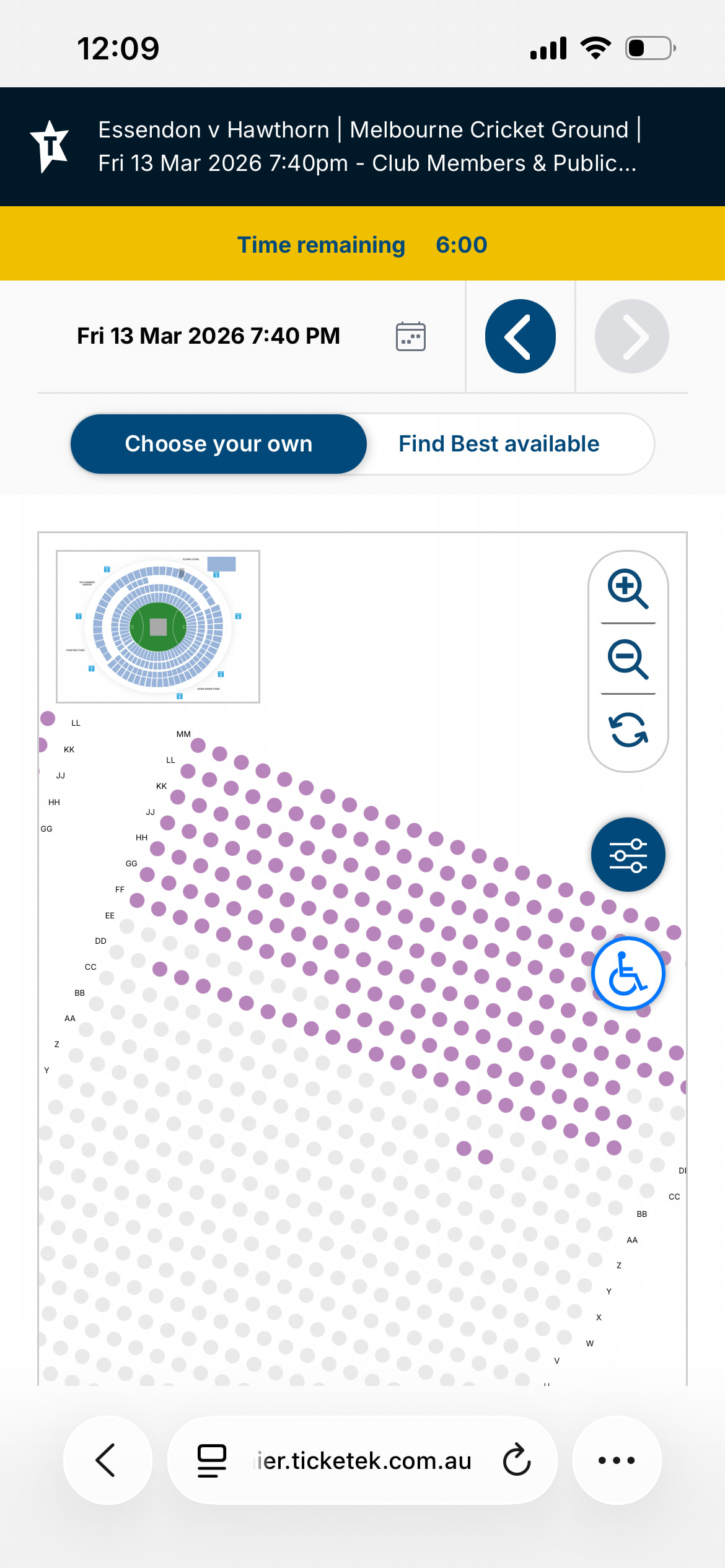 The AFL members section of the G is almost sold out